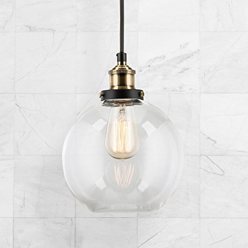 8 INCH CLEAR GLASS GLOBE - 8" diameter x 7" high, round clear glass globe with exposed decorative hardware. Perfect for kitchens, over counters and islands, and in hallways and bathrooms