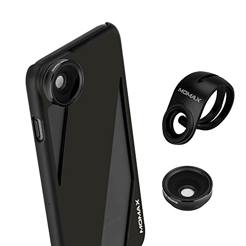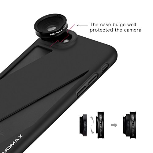iphone 7 Camera Lens Case,MOMAX 2 in 1 Phone Lens Kit(Wide Angle Lens+Macro Lens) with iphone 7 Protect Case,Black