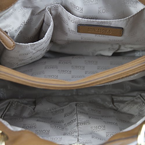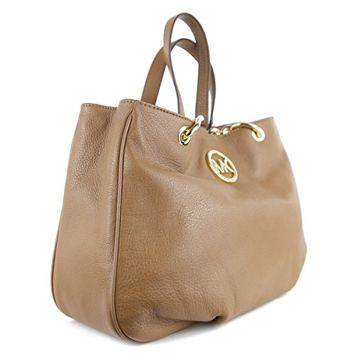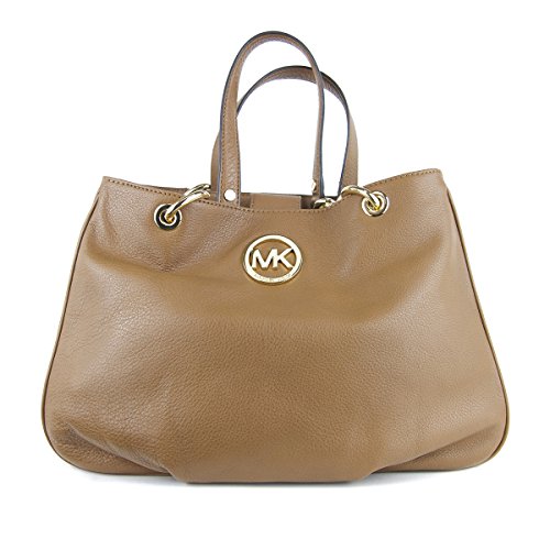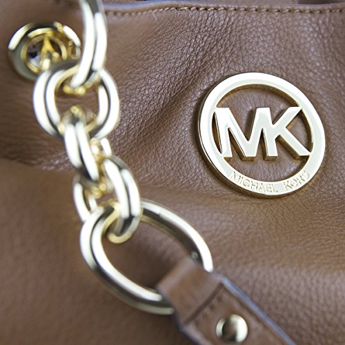 -. Binding : Shoes -. Brand : Michael Kors -. Color : Brown -. Department : womens -. EAN : 0889154480995 -. Feature : Gold-tone hardware; chain-link detail at straps; signature accents / Double handles with 10" drop / Interior features middle zip compartment, 2 snap compartments, 4 slip pockets / approximate deminsions: 13-1/2" W x 11-1/2" H x 5" D -. ProductGroup : Shoes -. ProductTypeName : SHOES -. Size : Medium -. Title : Michael Kors Fulton Chain Medium Leather Tote Luggage -. UPC : 889154480995 Functional, stylish, and gorgeous all leather authentic Michael Kors bag.