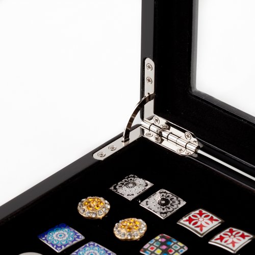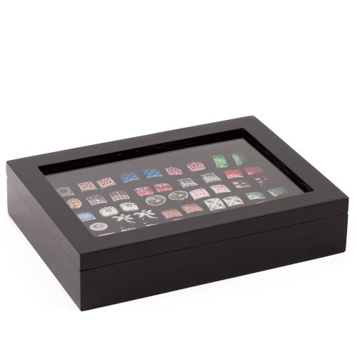 Studio : Cuff-Daddy Publisher : Cuff-Daddy Binding : Jewelry Product Description One good thing is never enough which is why most of us have this tendency to seek for more. The same holds true for avid collectors of tastefully designed cufflinks. Here at Cuff-Daddy we offer a range of affordable cufflinks case for both the avid collectors and working professionals. Measuring at 11" wide, 8" diameter and a height of just over 2", this elegant looking black lacquer box will generously hold up to 36 pairs of your most treasured collection of cufflinks. You can also put your collection for all to see with the glass cover protecting your valuables from dust and unwanted fingers. 0