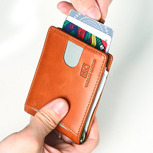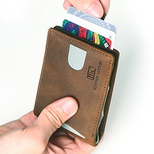 -. Feature : HOW IT WORKS- At last! A wallet that will meet your everyday needs. BC VINTAGE LEATHER wallets are equipped with a front pocket made for your most used card. 2 pockets on the inside, with a photo ID slot, and a premium Money Clip to hold your cash. Wallet case also has smart pull-strap for quick access to your everyday cards. / RFID BLOCKING - Our RFID blocking insulation prevents electronic pickpocketing and identity theft; your credit cards in the inner pocket of the wallet are protected from RFID theft (specifically 13.56 MHz RFID / NFC standard) / INTEGRATED MONEY CLIP - The metal money clip allows you to clip several bills inside your wallet / REFINED & STYLISH - Designed in CALIFORNIA to best combine elegance, quality and convenience. BC VINTAGE minimalist wallet is crafted with premium materials and great attention to detail / SLIM DOWN YOUR POCKET - We kept the dimensions of our slim wallet to 11,5 x 8,3 x 0,7 cm. It will fit in your pocket perfectly without bulging out