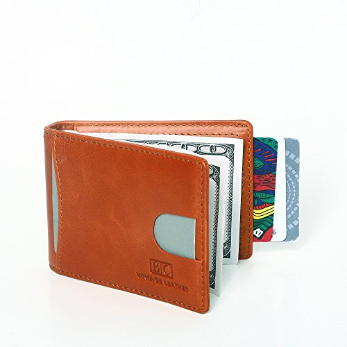 -. Title : BC VINTAGE LEATHER- RFID Blocking Bifold Slim Genuine Leather Thin Minimalist for Men - Money Clip - Made From Full Grain Aged Leather