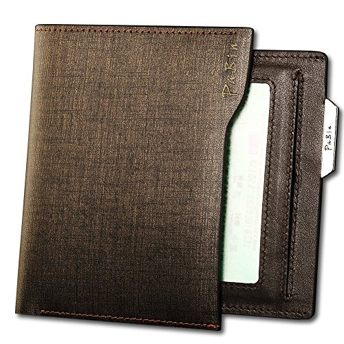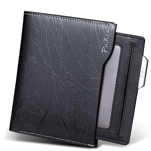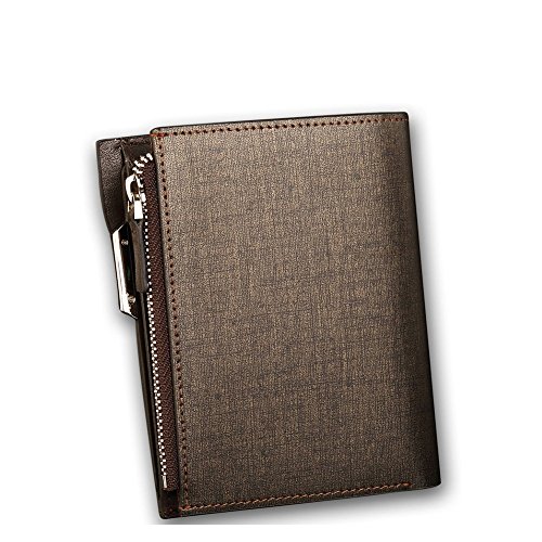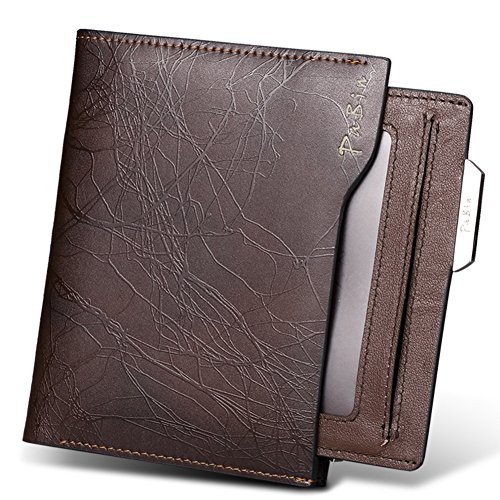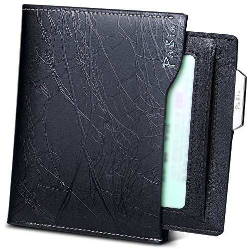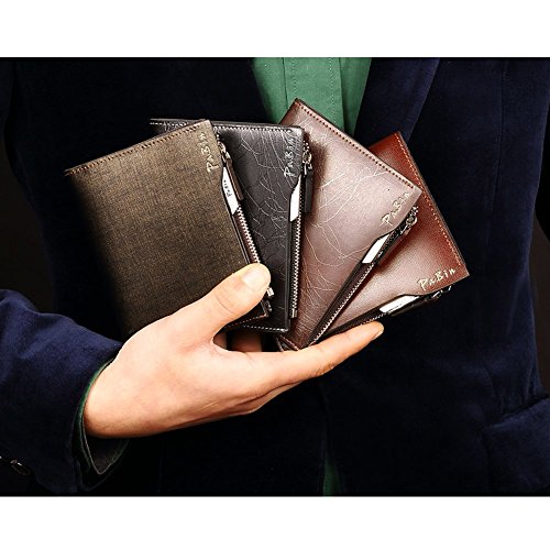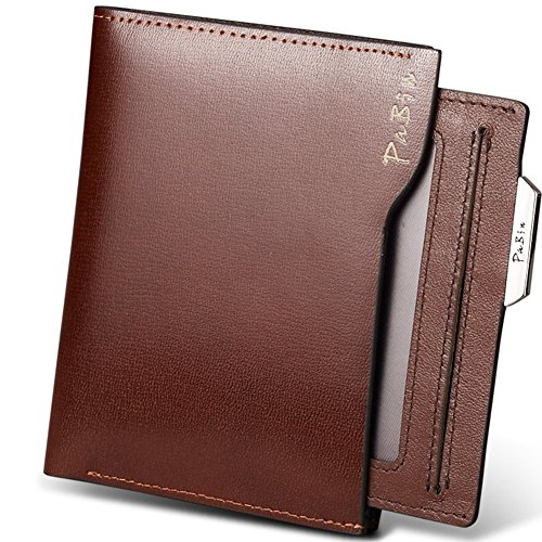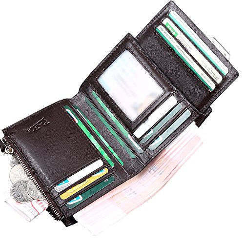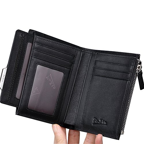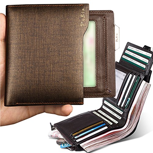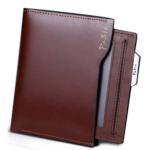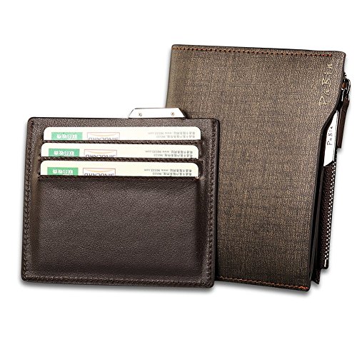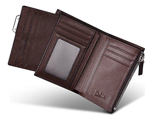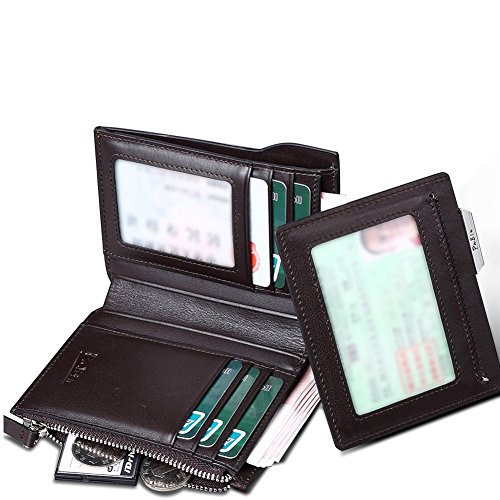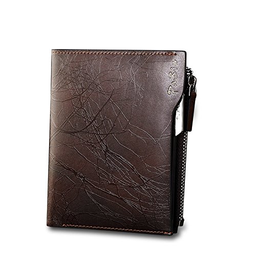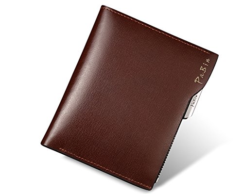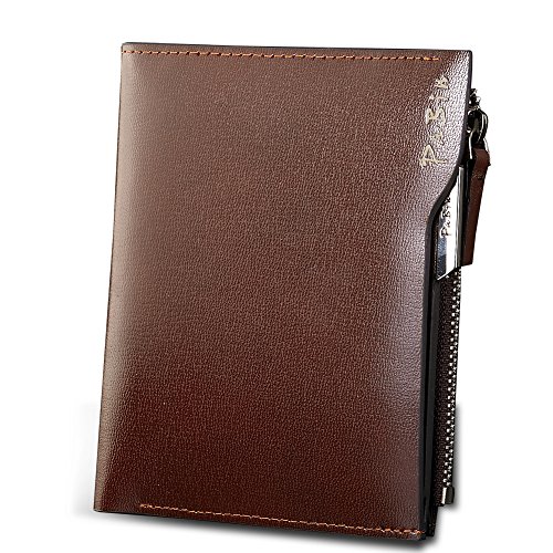 Pabin Genuine Leather Wallets for men Removable ID Case Coin Purse Zipper Vertical