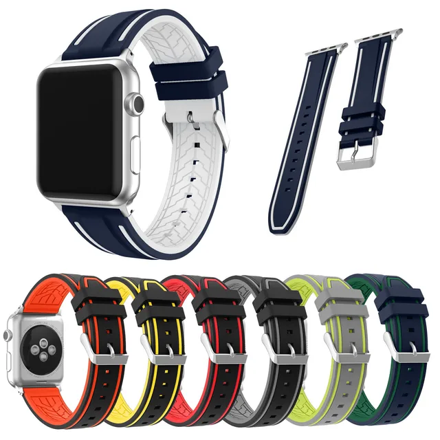 호환 애플 시계/스포츠 시계/시계 판 시리즈 1 및 2 특징: -100% 새로운 -- 고품질 실리콘 -함께 스테인레스 스틸 빠른 릴리스 어댑터 -완벽한 교체 밴드 애플 시계 -패션 디자인 스타일 당신이 수명 계약 않은 -- 7 색상 선택