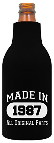 -. Brand : ThisWear -. Feature : A home bar set is a great 30th birthday gift idea. 30th birthday party ideas aren't complete without the necessary bar tools to have a cold one. Bottle openers are great 30th birthday gifts for men. / This durable bottle opener is made from real wood and makes a handsome gift. / This unique bottle opener measures just under 6 inches in length and fits comfortably in the hand. / The bottle coolie is made from premium 1/8 inch thick open cell polyurethane foam keeps your drinks cold and protects countertops from rings. / This home bar set is like giving the gift of relaxation. All the recipient needs to do is add a cold drink. -. Model : A-B-PD-WBO-0002/C0038-JIT03-02-Black-00 -. ProductGroup : Kitchen -. ProductTypeName : KITCHEN -. Title : 30th Birthday Gifts Made 1987 Wood Bottle Opener & Bottle Coolie Bundle Home Bar Set
