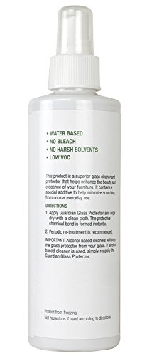 -. Binding : Kitchen -. Brand : Guardian -. EAN : 0016762200077 -. Feature : Superior glass cleaner and protector that helps enhance the beauty and elegance of your furniture / It maintains the crystal clear appearance of glass and contains a special additive to help minimize scratching from normal everyday use / The product chemically bonds to the glass and the protection will last for months -. Label : GUARDIAN -. Manufacturer : GUARDIAN -. MPN : GDRMBCGP024A -. PartNumber : GDRMBCGP024A -. ProductGroup : Home -. ProductTypeName : HOME -. Publisher : GUARDIAN -. Studio : GUARDIAN -. Title : Guardian Glass Protector - 8 oz -. UPC : 016762200077