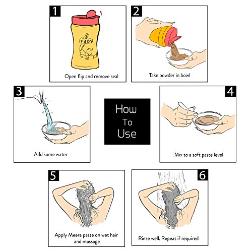 Same excellent Meera Herbal hairwash powder! Identical in quantity and quality to the boxed version which we also sell, but in sachet form; occupies less space in your cabinet, ships to you for less over the boxed version. Just fold and close with a rubber-band after first use. A healthy and traditional method of shampooing your hair. The Powder is made from natural ingredients that nurture and protect the hair making it soft and healthy. Meera powder is a blend of flowers and herbs such as shikakai, green gram, tulsi, vetiver and reetha which cleanse the hair, leaving it fresh and shiny. The powder also contains Hibiscus and Fenugreek which act as deep conditioners and strengthen each strand of hair from the root to the tip.Feature