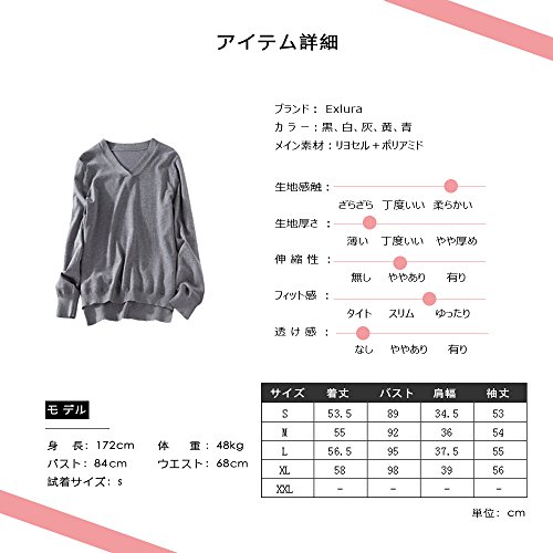 -. Feature : ネックは顔周りがすっきりと見えるVネックデザインで小顔効果も期待できる。 / ドロップショルダーで肩周りを自然にカバー、肩のラインを美しく見せてくれます。 / シンプルなデザインで、さまざまなコーディネートに取り入れられ、秋冬の定番アイテムとして活躍。 / デザインが洗練されているので着やせして見え、着こなしやすく、ジャケットやコートのインナーにも最適。 / ※ 商品のサイズが小さめですので、アドバイスとしては普段のサイズより、一つ大きめのほうがお勧めになります。