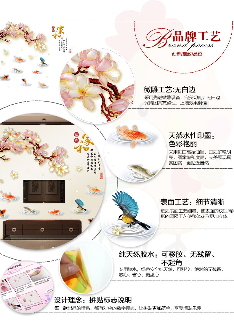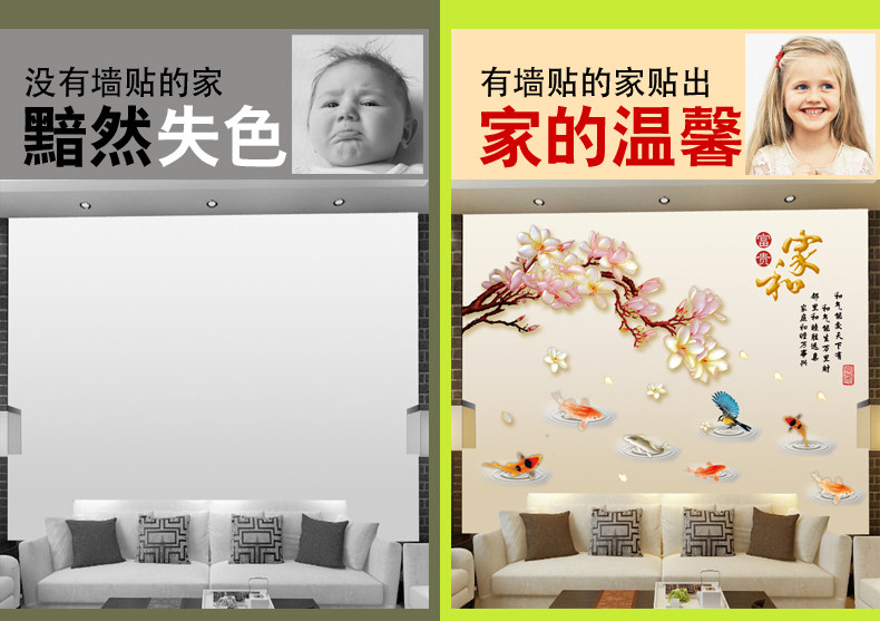 中国风梨花墙贴卧室书房创意装饰墙壁贴画温馨客厅背景墙环保贴画