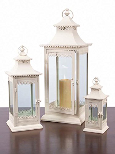 -. Title : Set of 3 Decorative Cream Cottage-Style Pillar Candle Holder Lanterns 27.5"