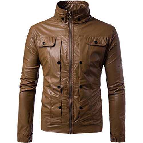 -. Title : Clearance ! GREFER New Men Leather Jacket Autumn&Winter Biker Motorcycle Zipper Outwear Warm Coat