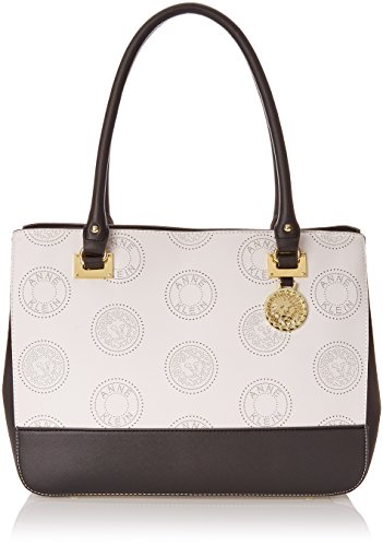 Anne Klein Signature satchel in colorblock detail. Signature Iconic logo in perforated style