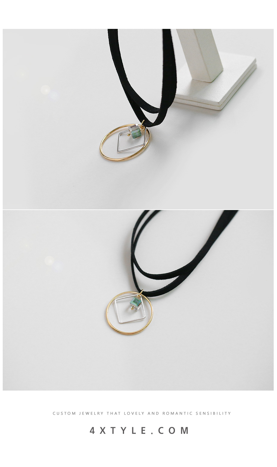 초커스타일로 두줄의 스웨이드 라인이 고급스럽고