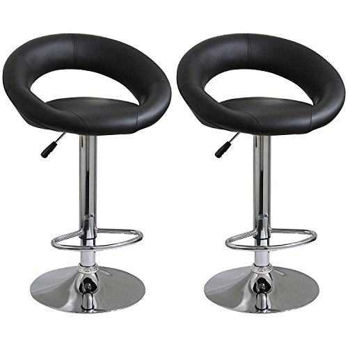 -. Brand : jersey seating® -. Color : Black -. EAN : 0640265300073 -. Feature : Sleek chrome metal base, PU Leather Cushion seat. / Back Of Seat Height :7" Seat Depth:15.7" Seat Width :18.2" Total Height :30.6"-38.9" / Side lever adjusts seat height up and down, swivel chair design so you can turnaround. / Light assembly required, not recommended for over 200 lbs. / We constantly update our items following customers reviews, since then this item's base has been widened to 16.5" so it stands more confidently. -. Label : jersey seating® -. Manufacturer : jersey seating® -. PackageQuantity : 1 -. ProductGroup : Furniture -. ProductTypeName : HOME_FURNITURE_AND_DECOR -. Publisher : jersey seating® -. Studio : jersey seating® -. Title : 2 x PU Leather Hydraulic Lift Adjustable Counter Bar Stool Dining Chair Black -Pack of 2 (153) Made By jersey seating® -. UPC : 640265300073