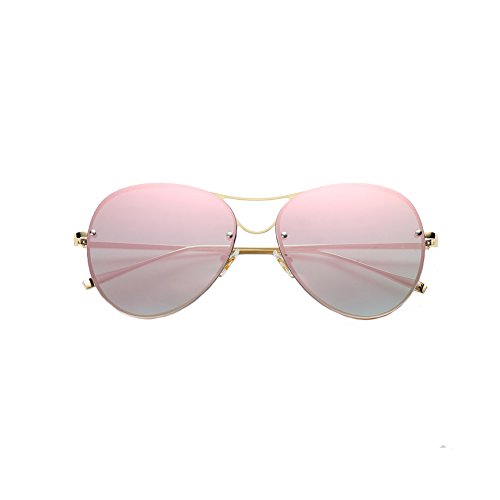 Sunglasses for Women,Aviator Mirrored Flat Lens Rimless Sunglasses Metal Frame UV400