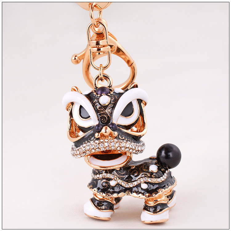 汽车钥匙扣醒狮舞狮子钥匙链创意可爱生日礼品钥匙圈链女水钻挂件