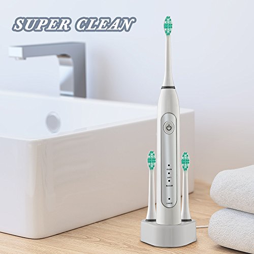-. Feature : ★POWERFUL CLEANING: This sonic electric toothbrush delivers up to 37,000 brush strokes per minute, removes up to 10x more dental plaque along the gumline than manual brushing. The sonic electric toothbrush can improve gum health up to 100% better than a manual toothbrush. / ★LONG LASTING BATTERY LIFE: 28 DAYS and Lithium Ion-Rechargeable support, light weight electric toothbrush! / ★3 BRUSHING MODES, SMART TIMER & QUADPACER : Clean (Regular), Soft (Sensitive), Massage (Gum Care). Each mode has a 2 minute automatic brushing cycle with interval pause reminding per 30 seconds to encourage good dentist recommended brushing habit. Soft mode of this electric toothbrush is good for new users and children over 8. / ★WATERPROOF AND MORE : This electric toothbrush is fully washable! it is easy to clean the sonic electric toothbrush in water. / ★2 YEARS WARRANTY: Satisfaction guarantee, if a purchased sonic electric toothbrush doesn't operate properly within 24 months, a new electric toothbrush will be replaced for free.