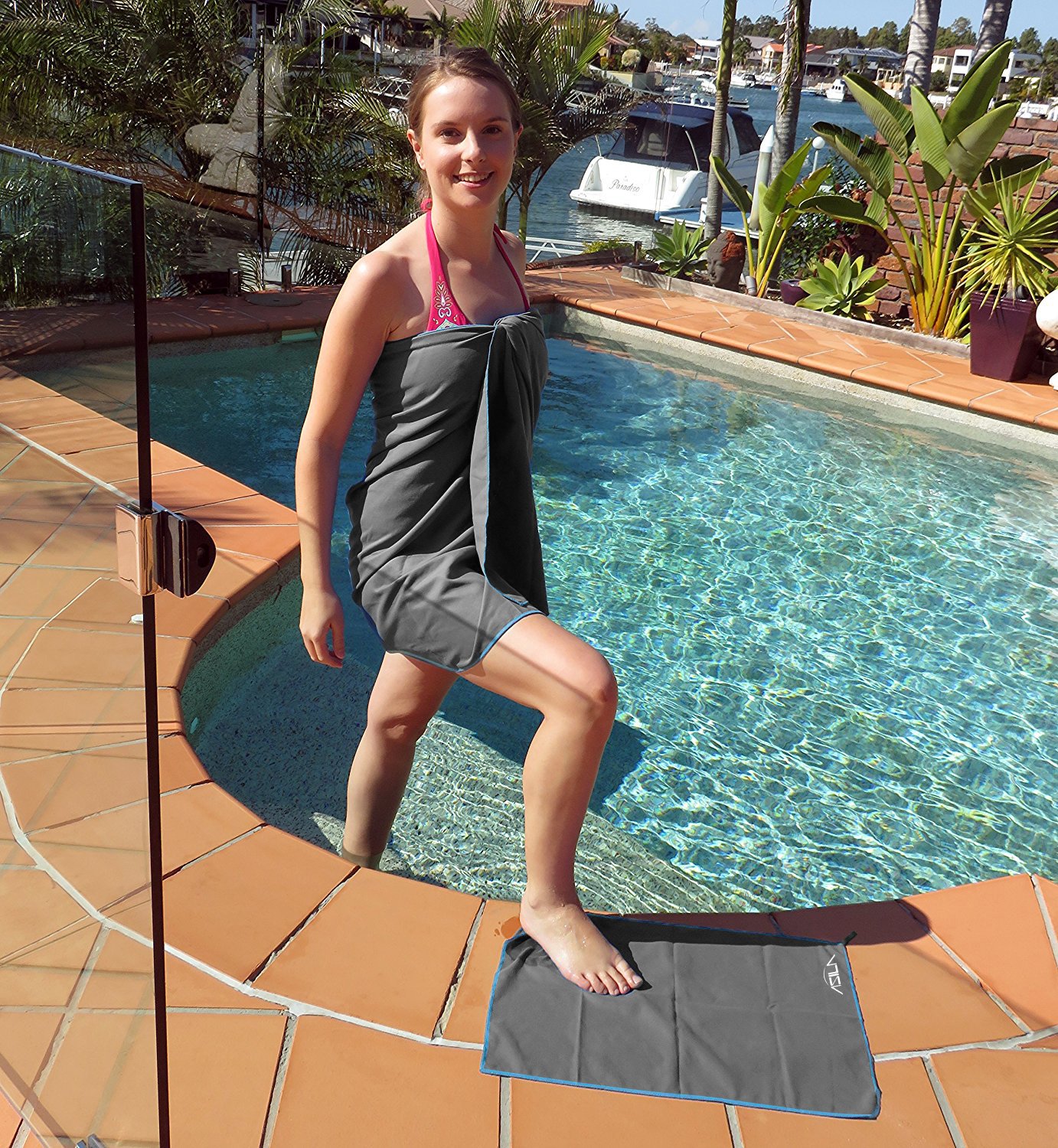 Large (150 x 80 cm / 59 "x 31") is also light: It is large enough as a microfiber towel and beach towel!