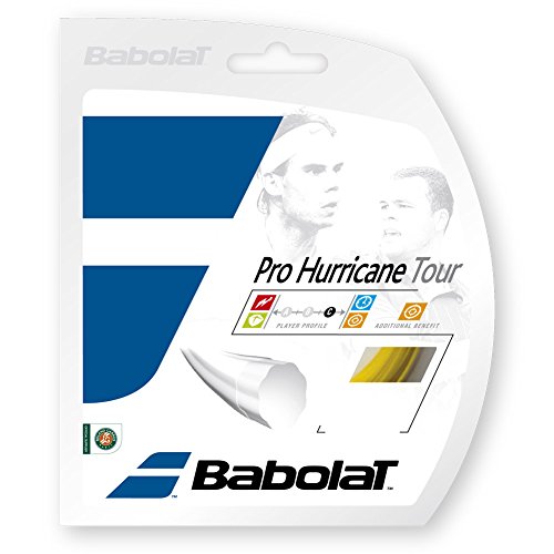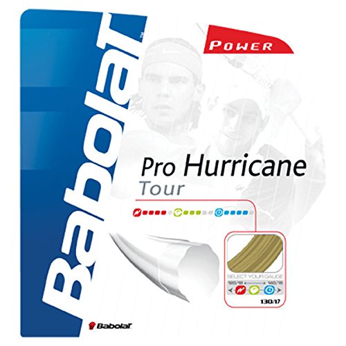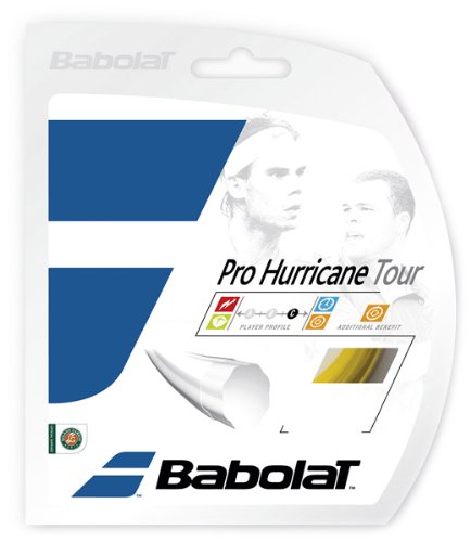Studio : Babolat Publisher : Babolat Binding : Sports Product Description Babolat Pro Hurricane Tour Tennis String Max Spin Power. Get the maximum power and spin out of your shots using Babolat's Pro Hurricane Tour string. This string supplies ample comfort to keep you hitting shots harder and with more spin longer than ever without fatigue. Length: 40 feet / 12 meters Gauge: 16 gauge / 1.30mm 17 gauge / 1.25mm Color: Natural 0