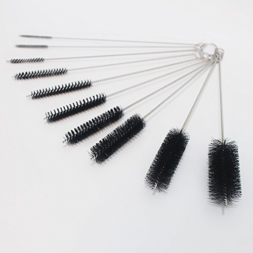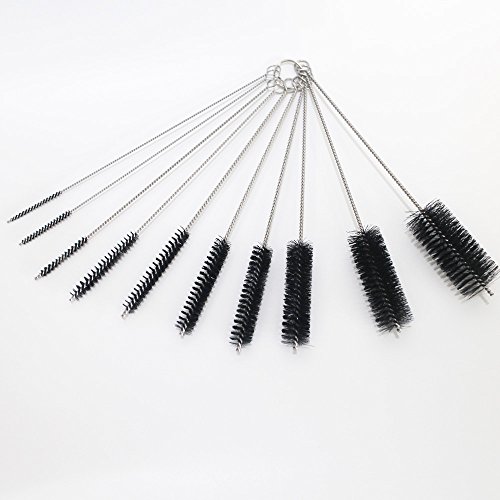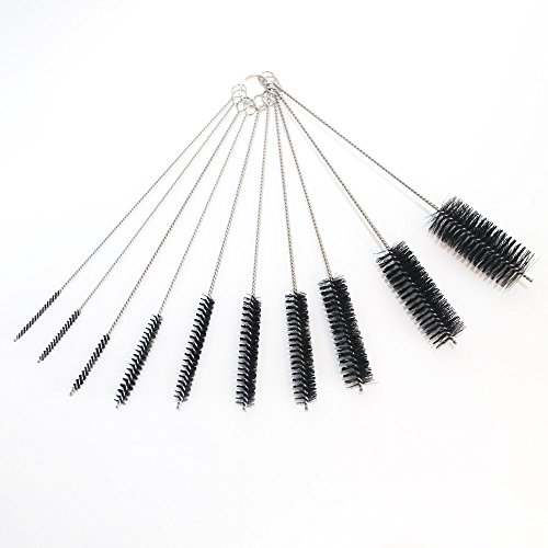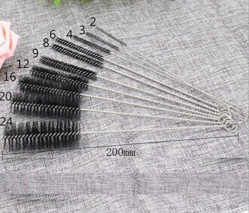 1. 10 pieces nylon tube brushes, different diameters from 2mm to 24mm, you can always find a fit tool when cleaning gaps. 2. Suitable for drink straw, bottles, keyboards, jewelry and small nozzles, etc. 3. easy to get into hard-to-reach spaces, and no more remaining dust in your life. 4. convenient loop at the end of the handle to hang when not in use or to reattach to the key ring for safe keeping.