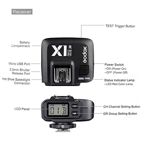 -. Feature : GODOX最初のTTLワイヤレスフラッシュトリガーレシーバーX1R-Nは、ニコンのデジタル一眼レフカメラに適しています。 2.4G無線伝送、32チャンネル、最大。フラッシュ同調速度は1 / 8000Sまでです。 / マルチチャネルのトリガ、安定した信号伝送、および敏感な反応をフィーチャー。 受信機は便利な操作を提供するために、大きなLCDパネルを装備します。 / カメラ、スタジオフラッシュとカメラのフラッシュをトリガするために、1つのトリガまたはX1Nキットで使用することができます。 X1R-Nがi-TTLをサポートし、市場で入手可能なカメラと互換性があります。 / (I-TTL自動調光)ニコンデジタル一眼レフカメラとの互換性があります。。 / PCのシンクロソケットを持っているすべてのカメラをサポートしています。