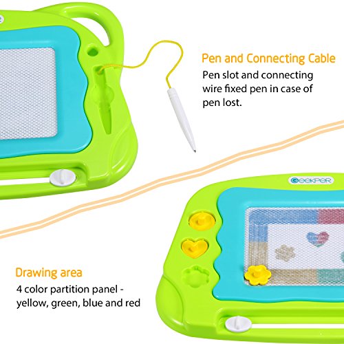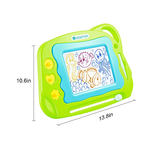 Kids will have hours of colorful, mess-free fun with this Geekper Magnetic Drawing Board. With a large easy to use screen, 3 flower stamps, and an attached pen, budding artists will have hours of fun discovering their own creativity and building confidence as little painters and drawers. Geekper is also a perfect my first learners tool. Teach numbers, the alphabet, and colors whilst having hours of fun with your children.