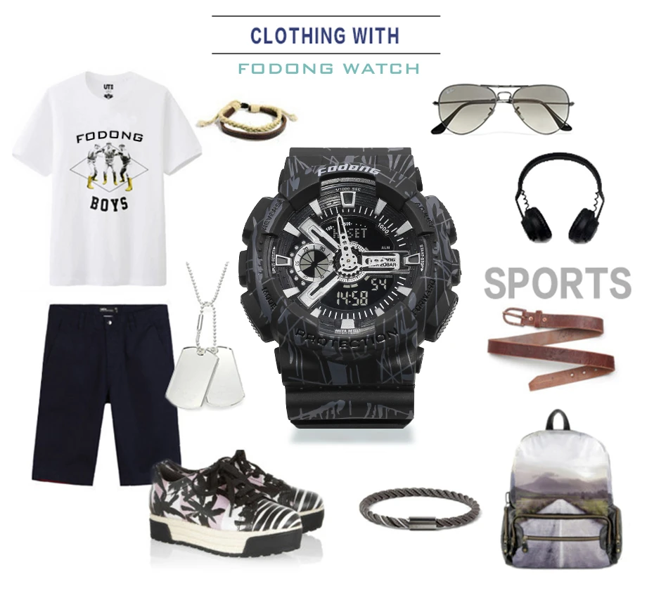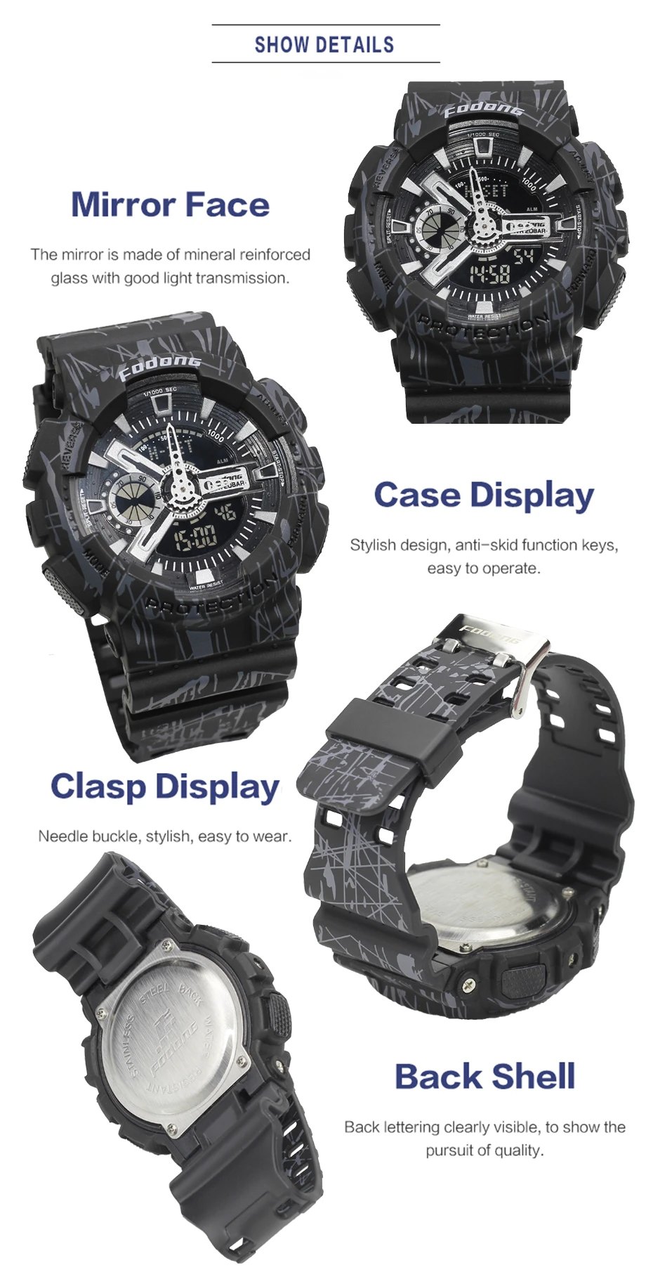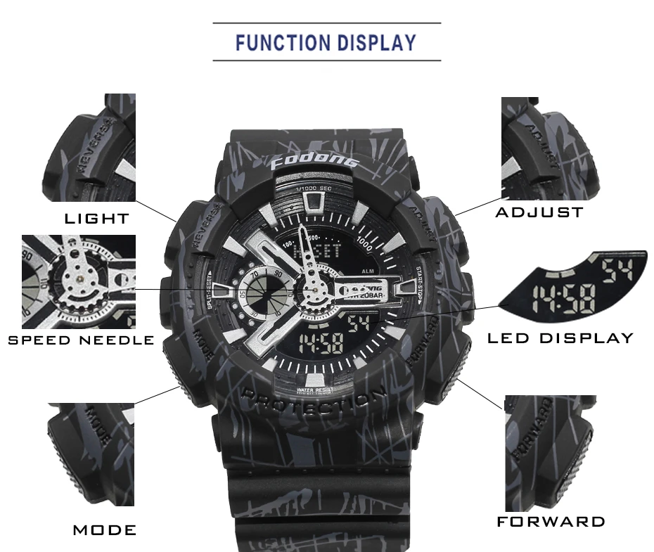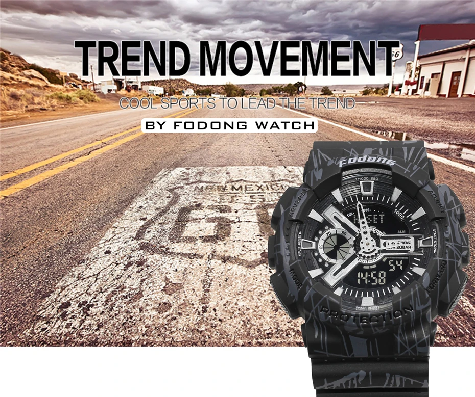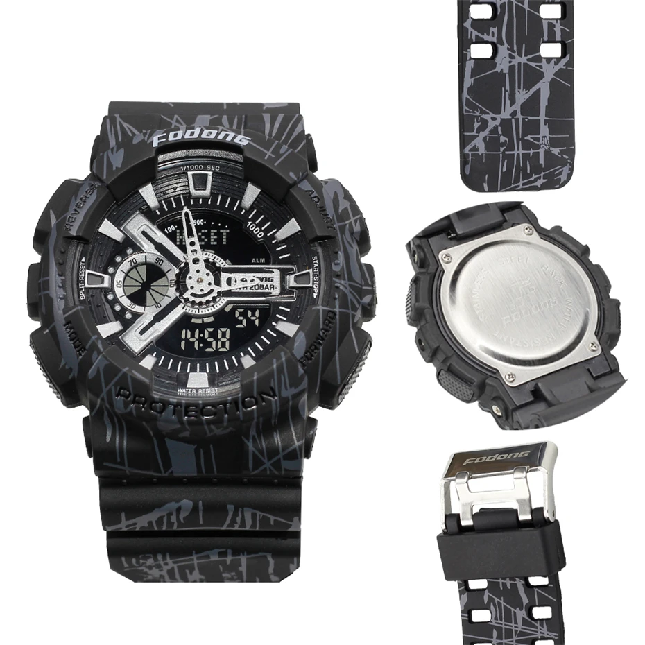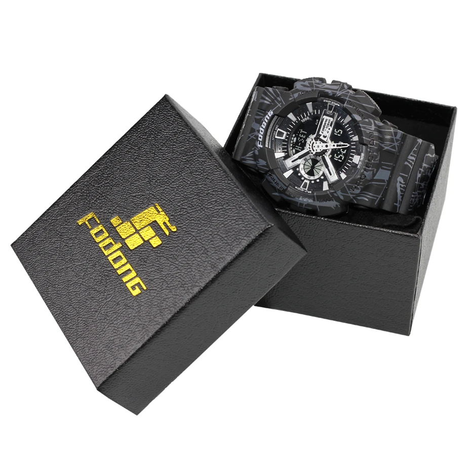 | [해외] Fodong 패션 블랙 충격 Relogio Masculino 방수 듀얼 디스플레이 스포츠 시계 고무 리피터 LED 디지털 시계 남성 |