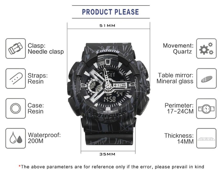 상품 내용 Fodong 패션 블랙 충격 Relogio Masculino 방수 듀얼 디스플레이 스포츠 시계 고무 리피터 LED 디지털 시계 남성 주의: 제품 100% 현물 촬영, 다른 표시 생성합니다. 표준 색상 물리적. 감사합니다! > > 특별 참고 -백라이트, 달력 날짜, 정지 시계, 리피터 및 경보 > > 방수 사양 시계 진짜 30 메터 방수, 세척 또는 수영복, 수영, 다이빙. 대한 배송 모든 국가에 무료 배송 통해Aliexpress 표준 배송추적 기능. 추적 번호 100% 수 queried 두루두루. 배달 시간은 7-60 일.60 일, 우리는 돈을 환불. ![]() 서비스 ![]() 우리는 진심으로 서비스를 제공. 당신은 질문이있는 경우, 즉시 알려주십시오. 우리는 당신에게 만족스러운 솔루션을. 각 구매자, 각 피드백 좋아요. 때 당신이, 우리는 진심으로 당신이 우리에게긍정적 인 피드백. 마찬가지로, 우리는 긍정적 인 의견을 남겨주세요. ![]() 따뜻한 팁 전에 주문을, 당신의 주소가 정확한지. 그렇지 않으면, 패키지 목적지에 도달. ![]() 당신은 쿠폰 ![]() 당신은, 당신은 지금 또는 장바구니에 추가 좋겠어요 목록 ![]() 추가 즐겨 ![]() 또는 공유 할 SNS ![]() 방문,링크를 클릭 또는사용 전화 스캔 QR 코드 ![]() ![]() 포장 상세