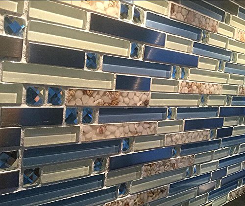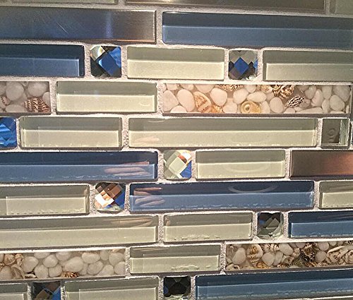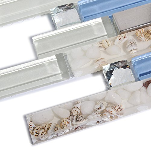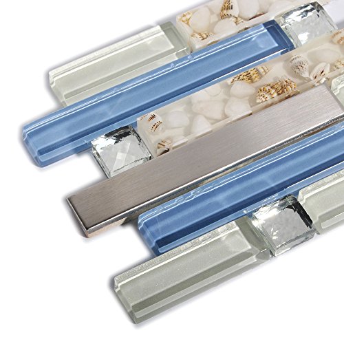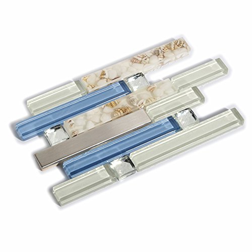 TST Glass Inner Conch Tile Beach Style Blue Cream White Brushed Steel Art Mosaic Kitchen Backsplash Bath Decor TSTNB06 (1 Sample [4'' x 6''])