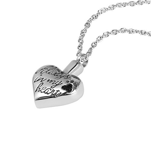 -. Binding : Misc. -. Brand : ZARABE -. Color : SILVER -. EAN : 0711091984475 -. Feature : Material: 316L stainless steel / Pendant size:Length:3cm(1 1/8");Width:2.1cm( 7/8") / Thickness:0.7cm( 2/8");Internal dimensions: 10mm x 2mm / This beautiful piece of quality jewellery is also designed to hold a small amount of a loved one or pet's ashes, ensuring that there is always a part of them held close to your heart / Pet Urn Pendant comes with a beautiful black Velvet Gift Bag -. Label : Zaland-pet -. Manufacturer : Zaland-pet -. MPN : ZAR-2393 -. PackageQuantity : 1 -. PartNumber : ZAR-2393 -. ProductGroup : Pet Products -. ProductTypeName : ART_AND_CRAFT_SUPPLY -. Publisher : Zaland-pet -. Size : 3cmx2.1cm -. Studio : Zaland-pet -. Title : ZARABE Cremation Jewelry "Always in my heart" Puppy Dog Paw Pet Memorial Urn Pendant Necklace -. UPC : 711091984475