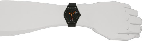 Black stainless steel watch featuring matte dial with date window and bright orange hands
