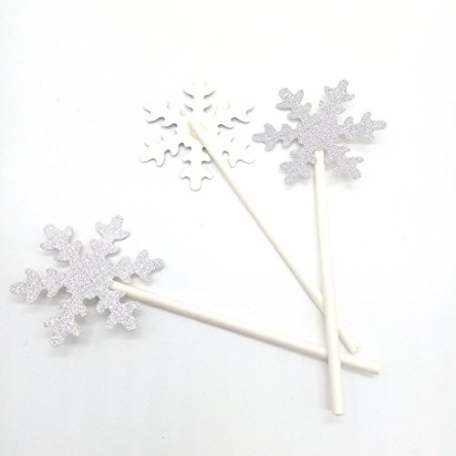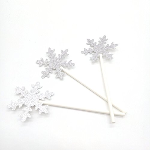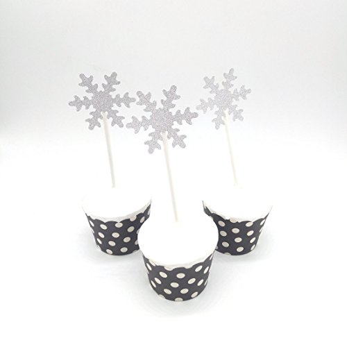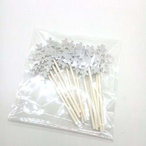 Paity 12pc Snowflake cupcake toppers Silver Glitter Snowflakes Snow decoration Frozen Party cupcake toppers Winter Wonderland Winter birthday