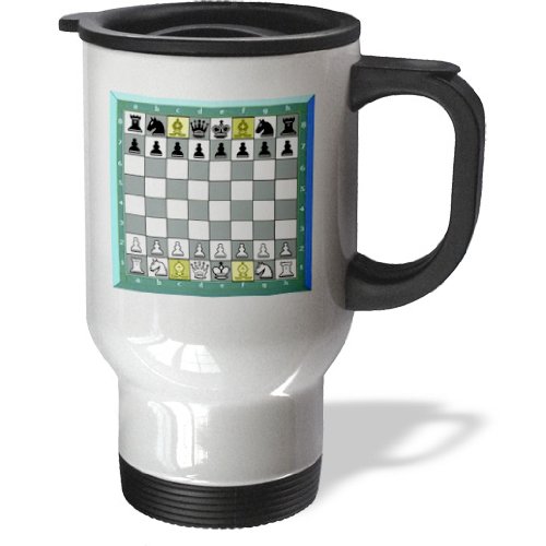3DROSE FULL CHESS BOARD TRAVEL MUG, 14-OUNCE, STAINLESS STEEL