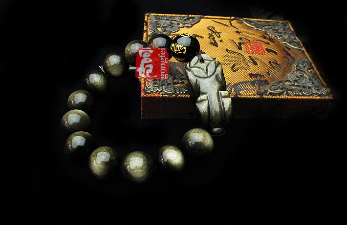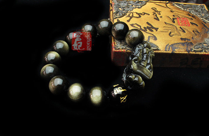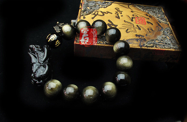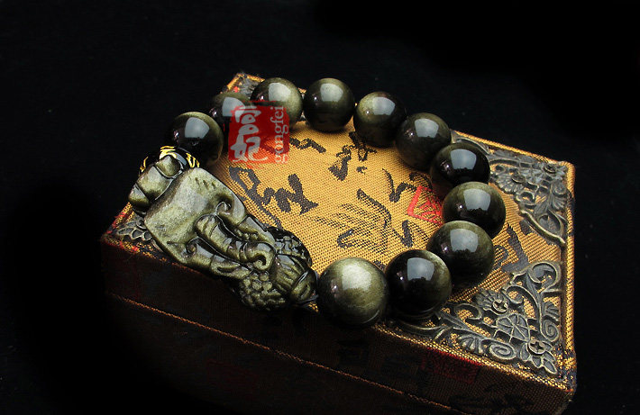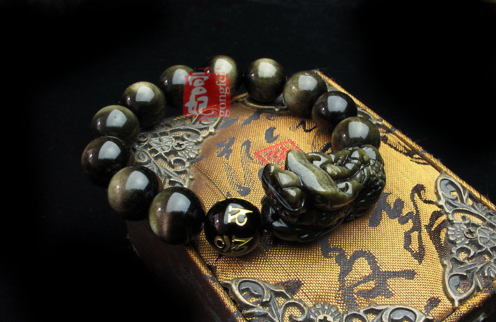【商品名称】六字箴言金曜石貔貅手链【商品材质】天然黑曜石【商品尺寸】单珠直径约12毫米14毫米,16毫米,貔貅约39X17X16毫米。【包装方式】精致包装盒