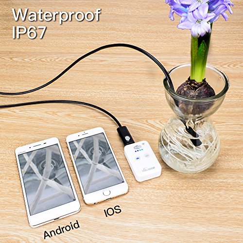Multiple Applications - Comes with 9mm diameter and waterproof camera, 6 tiny white LED lights(adjustable brightness). This wifi inspection camera is ideal for peeking inside walls ceilings pipes drain holes, or inspecting car motorcycle cylinder bores and intake and exhaust ports, HVAC inspection, vent pipe, machine equipment, engine, automotive, boat, aircraft inspection.
