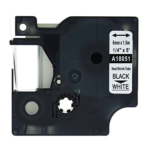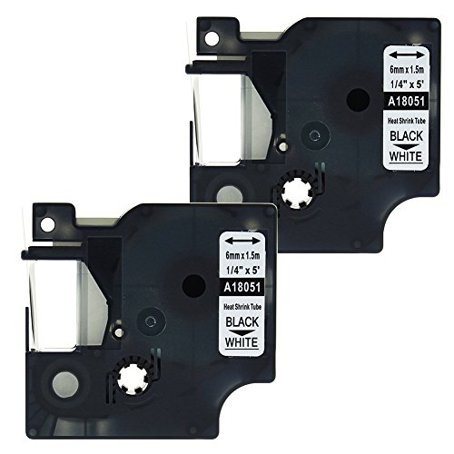 Anycolor 2 Pack 6mm Black on White Heat Shrink Tube Compatible DYMO 18051 for RhinoPRO Printers 4200 5200 6000 (1/4" x 5')