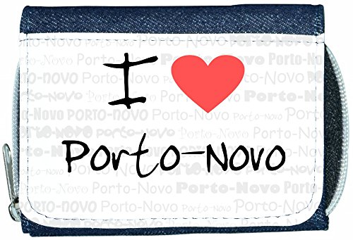 Binding : Apparel Product Description High quality wallet - I Love Heart Porto-Novo Denim Wallet. Denim back, printed front flap. Full zip opens on divided area for two coin sections. Flap area over 4/5 credit card sections, clear photograph/ID section and large note section. 0