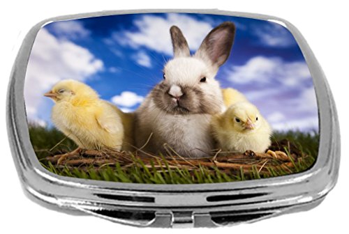Rikki Knight White Easter Bunny with Yellow Chicks in Basket Design Compact Mirror, 17 Ounce