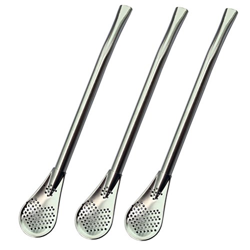 Amgate Set of 3 Pcs SmoothFlow Stainless Steel Yerba Mate Tea Bombilla Straws ~ Filtered Spoons Drinking Straw, 15.5cm(6.1")