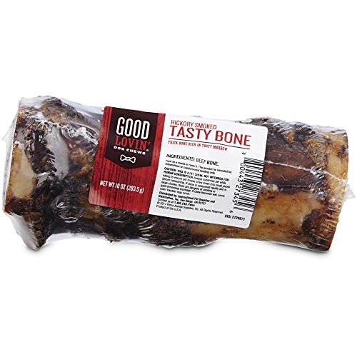 -. Binding : Misc. -. Brand : Good Lovin' -. Feature : Hickory Smoked Tasty Bone Dog Chew from Good Lovin' / Beef bone rich in tasty marrow / Chew Type, Aggressive / Sourced from USA / Satisfies their instinct to chew -. Label : Good Lovin' -. Manufacturer : Good Lovin' -. PackageQuantity : 1 -. ProductGroup : Pet Products -. ProductTypeName : PET_SUPPLIES -. Publisher : Good Lovin' -. Studio : Good Lovin' -. Title : Good Lovin' Hickory Smoked Tasty Bone Dog Chew