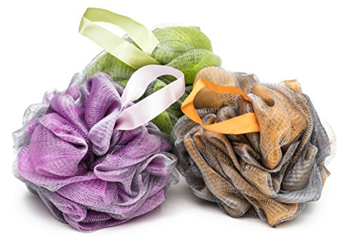 With their rich texture, two tone appearance and hanging ribbon, these luxury loofah shower puffs lather up quick and will look like a work of art in your bathroom.