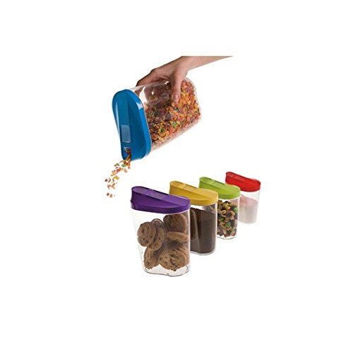 [Product Information]- Store and Pour from the same container. Great for kitchens, pantries, dorms, picnics, camping and more. Meant to extend the life of contents, while making dispensing simple. Clear base makes for easy viewing of contents. Easy-pour design. 5 convenient sizes with colored lids.