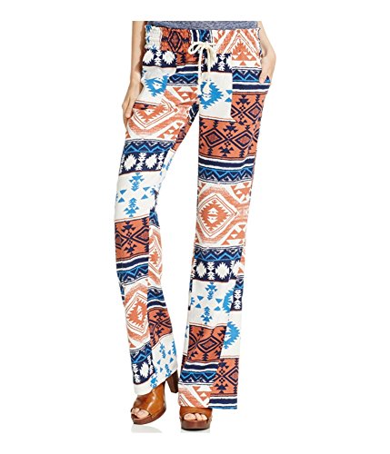 Item Description: Allover bright geo printed lounge pants Low rise with drawstring waistband Pull on style relaxed through hip and thigh Offseam pockets and wide leg openings Back pockets with stitched logo