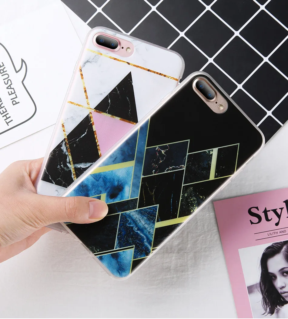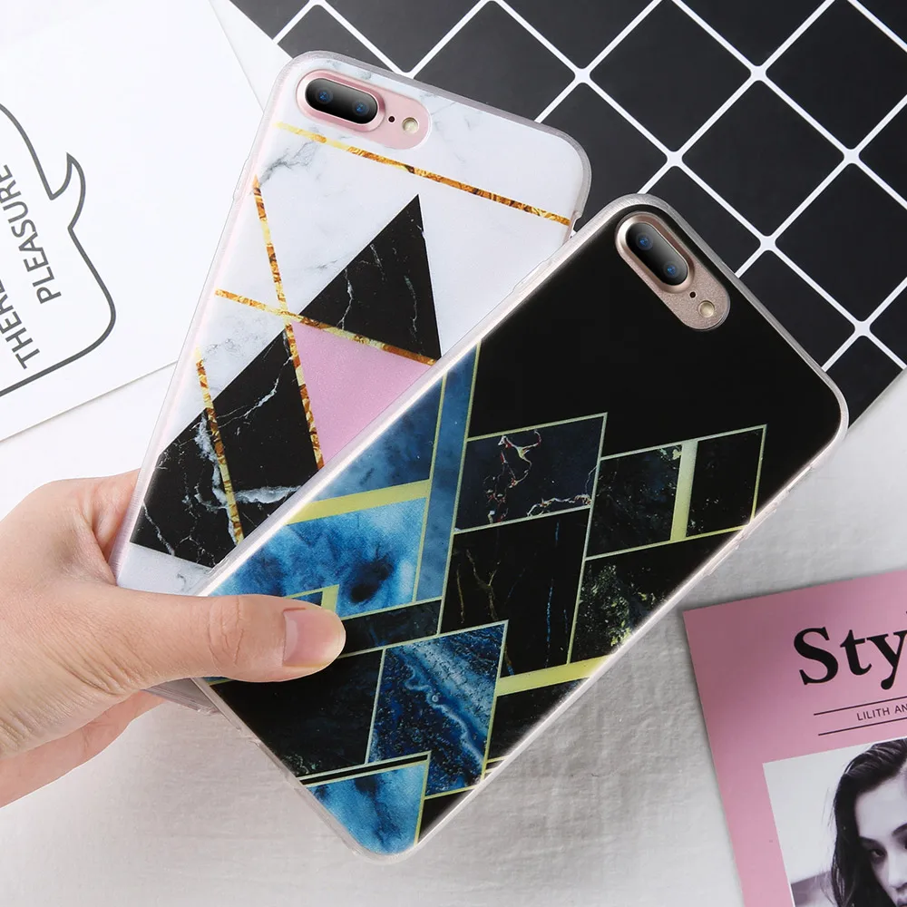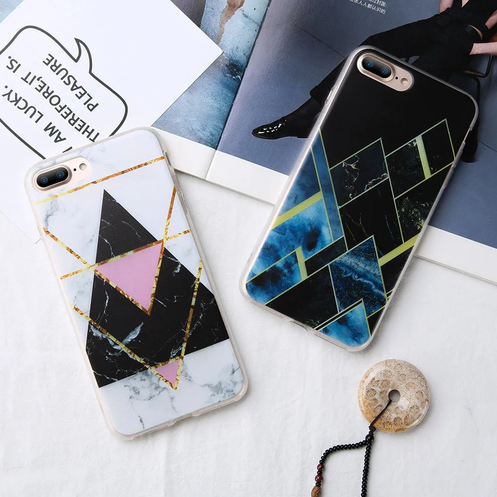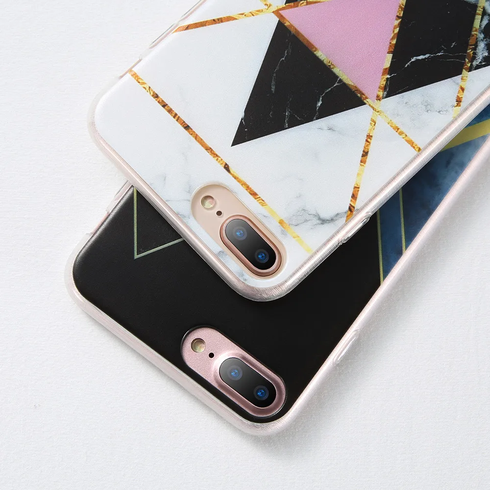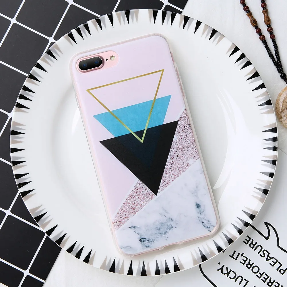 Features:Geometric Triangle Marble Pattern Phone Case Cover Phone Shell Coque