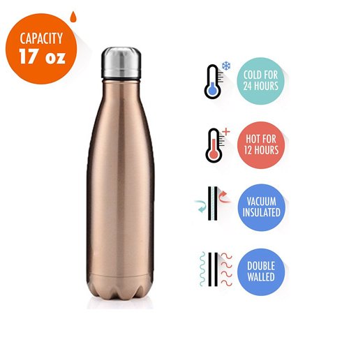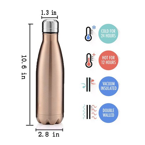 Travel Water Bottle 17oz Vacuum Insulated Leak-proof Double Walled Stainless Steel Cola Shape Sports for Camping Hiking Cycling