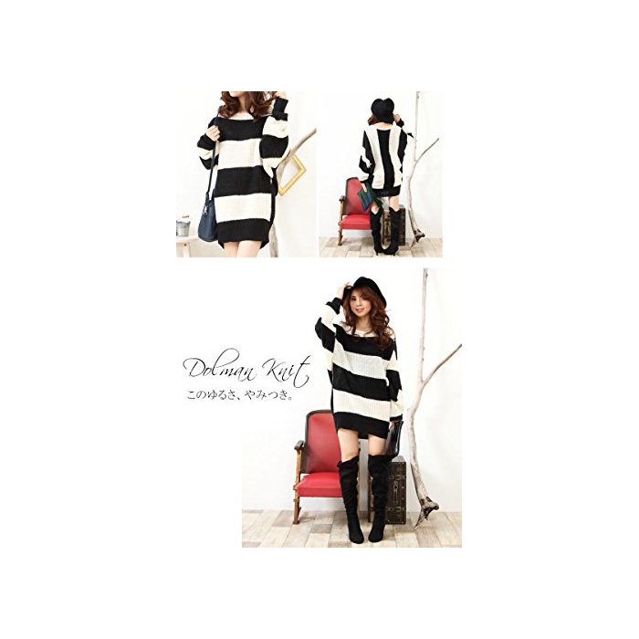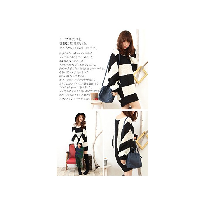 (Goldjapan)골드 재팬 큰 사이즈 큰 사이즈 레이디스 크로《시에》 보더 달러 맨 롱 길이 니트 원피스 스웨터 크루 넥 톱스 튜닉 긴 소매 체형 커버