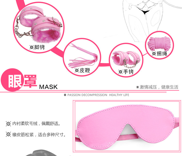 革8件套:手铐、皮拍、绳子、鞭子、眼罩、脖子套、口塞、乳夹(不含脚铐,手铐内不含毛绒)
