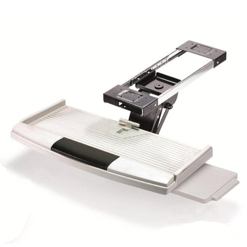 -. Feature : Composed of width-adjustable keyboard tray, mouse tray and wrist rest; extremely smooth movements with ball bearing mechanisms; Keyboard tray for all keyboard style; ABS frame; dimensions: 23.6" (L) x 6.5" - 8.1" (W) / Arm adjust tilting angles: 10° up/60° down; Height adjustment: 5.9" (150mm); Loading area depth: 3.5"-7.7" (distance from bottom surface of desk to this unit after being installed) / Friction track and spring assist mechanism; Control and use your keyboard tray unit in easy ways; Meterials: solid steel & ABS