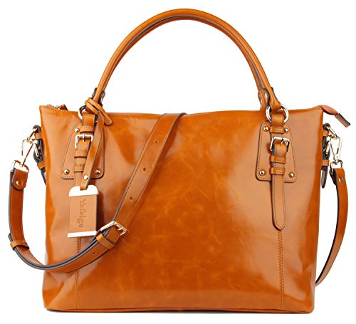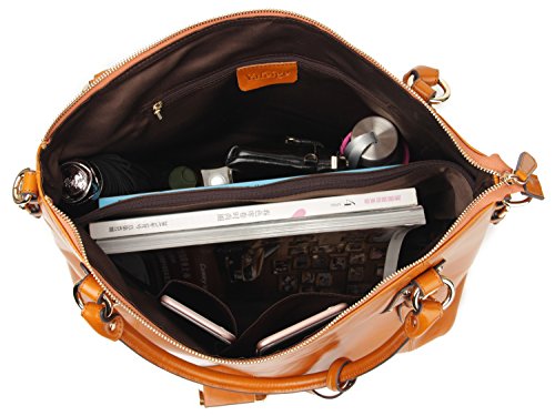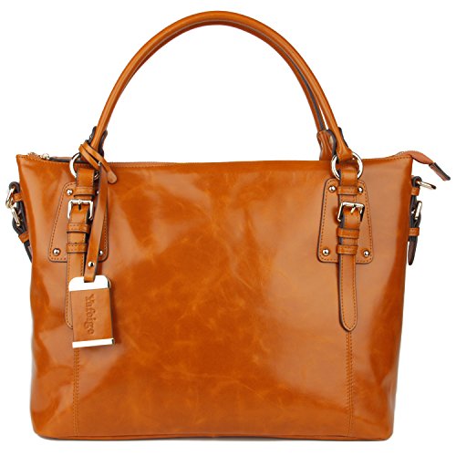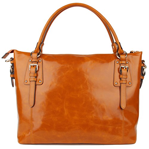 -. Feature : Grace and elegance. True soft high-grade leather. Yafeige handbags using High quality luxury Top grain oil wax leather and with durable nylon lining. / Closure Type: Zipper. Top handles with twin buckles design, Neat and delicate car suture, Classic light gold hardware accessories and Bottom with golden metal rivet protective. / Inside, 2 compartment pockets with 2 zipper pocket and 2 open pocket. May hold 15.4" Laptop, A4 magazine, portable textbooks, wallet, phone etc. This is a large tote bag! Roomy storage, divide main compartment and multi inner pocket for your better organizing. / This purse dimensions : L15.75" *H11.81" * D6.69" inches. Handle drop: 7.87" inches. Weight: 3.09 pounds. Removable and adjustable shoulder strap. could be use as a shoulder bag or work tote. / This handbag has Yafeige brand LOGO. Yafeige is an US registered trademark, unauthorized sale without permission,We will complain any acts of infringement without warning!