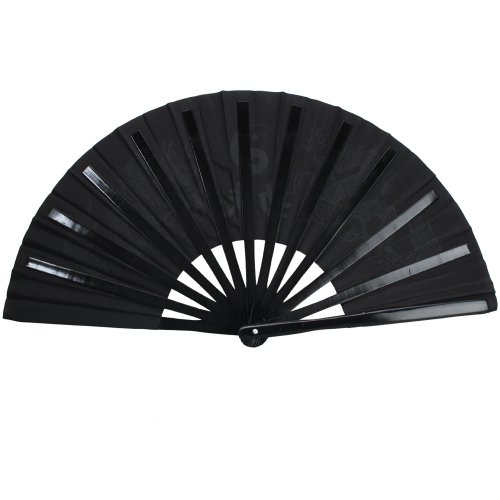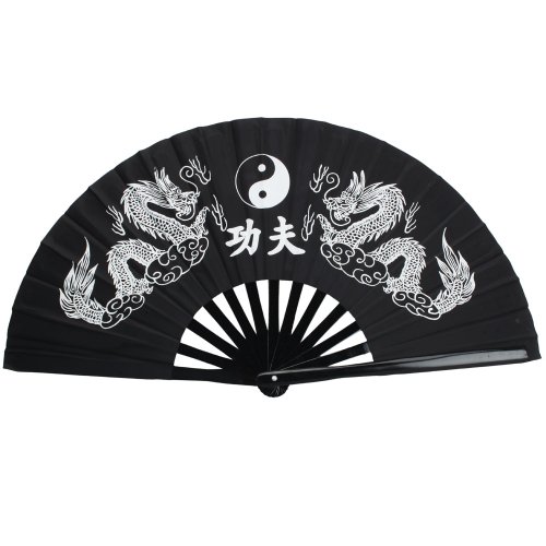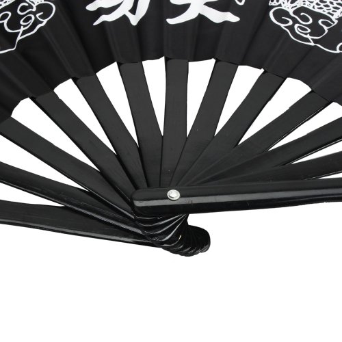 Rhumen 35cm Bamboo Chinese Fan Tai Chi Kung Fu Folding Fan With Dragon Design. (Black)